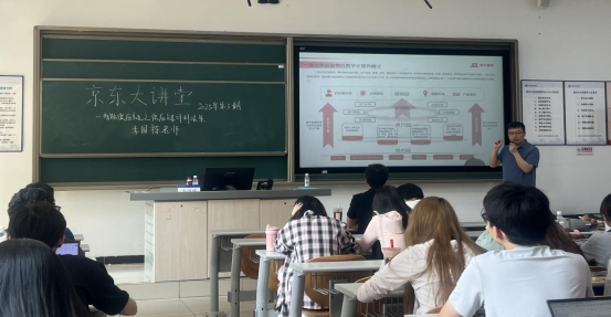 的本科生和研究生进行主题为“智能供应链之供应链计划决策”的讲座。李老师负责智能仓储环境下,货到人AGV系统(地狼系统)的规划设计工作,熟悉供应链网络规划、仓储工艺规划的相关业务,对供应链和物流系统规划和仿真有多年研究和从业经验,现任物资学院 2048 核基地